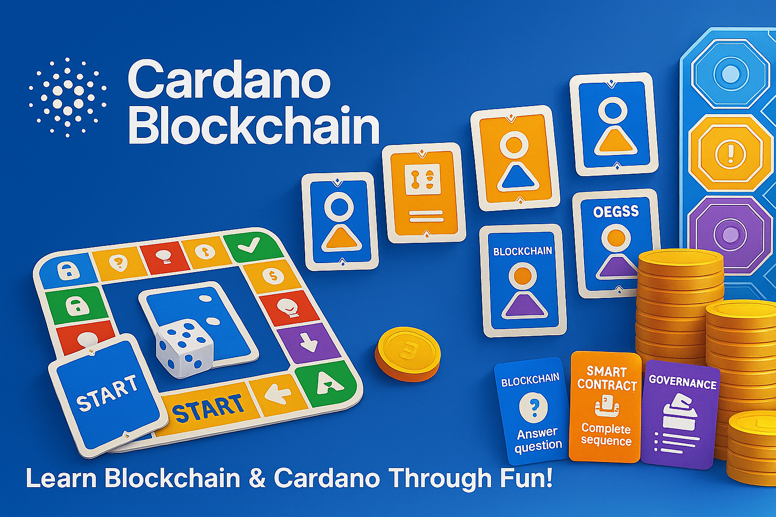 Cardamania is an educational board game designed to teach the basic principles of blockchain, cryptography, and Cardano in an interactive and fun way.